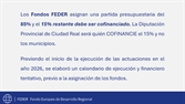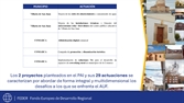 Estas actuaciones se centran en la modernización de infraestructuras básicas, la eficiencia energética, la gestión sostenible del agua, la rehabilitación de espacios públicos y la mejora de la accesibilidad y la cohesión social. También se impulsarán proyectos comarcales de promoción turística, digitalización y creación de espacios coworking rurales, con el objetivo de generar oportunidades económicas y fijar población.